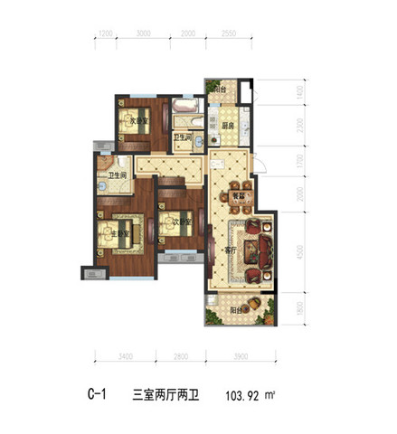 三室 二厅 二卫